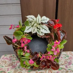 ベゴニアのリースを作ってみました💕 小さめのリースなので ベゴニアは株分けしました😵 挿し芽も出来る花なので 分け方適当にしてしまいました😱 ピポエステスの白をポイントにしてみました どちらも夏に強い植物です❕🥰コリウスを最初 選びましたが 一回り小さいピポエステスに…クーポンが