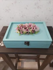 工作キット作成🩵 WSの作品を片付けていたら、昨年夏に購入した工作キットのジュェリーボックスを見つけました。当時は夏休みのWSのイベントで大人気でどこへ行っても品切れで、やっと見つけた時は嬉しさのあまり、3個も買ってそのまましまい込んでいたんですね😅。早々に街ゼミで習った事の復習開始・キットを組み立ててから塗料を調合