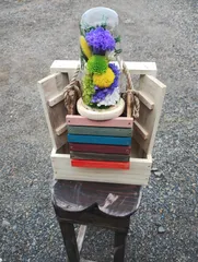 トールウッドボックスアレンジ ■作品内容工作キットのトールウッドボックスをアレンジ ■こだわりポイント側面にジグソーとトリマーをかけてやわらかな雰囲気にしました家にあった塗料のお気に入りでカラフルに