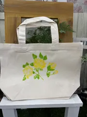 アデリアレトロなトートバッグ 「マスカレード」のステンシルをしました イエローの花が咲きました