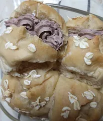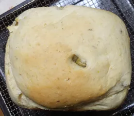 味はバッチリ、歯応えも良く、なんですが、 (しっかりしたパネトーネみたい🤔) 具の入れすぎかな? オートミール レーズン プロセスチーズ 膨らみ半分…😆 もしかしたらホームベーカリーのストライキ??