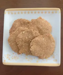 簡単✨オートミールクッキー ジップロックなどの厚手のビニール袋に材料を全て入れて混ぜたら成形。あとは焼くだけの簡単オートミールクッキーです🍪 ■材料 20枚位・オートミール 50g・米粉 50g・きび砂糖 25g ・きな粉 50g・豆乳 45g ( 約40cc