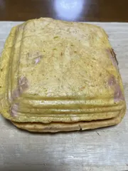 キャンプにいかが、ホットサンドメーカーで簡単お好み焼き❗️ ままたまたやってしまいました。ストーブとホットサンドメーカーを使ってのキャンプ飯。こ今回はお好み焼きにチャレンジしました。ああえての魚肉ソーセージです見えている方もだんだんと固まってきましたひっくり返して両面焼きますこれもあえてのカップ焼きそばですぎゅっと挟んで再び焼きます完成しましたビールと合いま