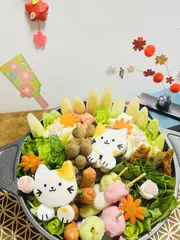 にゃんこのうま塩鍋 ■作品内容にゃんこ2匹を白はんぺんでつくってみました ■作品のこだわりポイント白はんぺんとハムで肉球も作りました