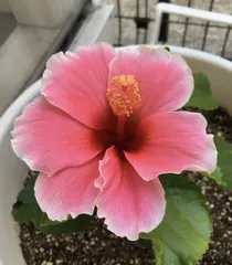 一度は枯れかけたハイビスカスが復活! ■作品内容昨年の夏に購入したものの冬に弱ってしまっい今年に入り植え替えをし様子見していました。■こだわりポイント今年の春に植え替えをした際、主幹だけを残して細い枝は全て切ったところ、5月頃から新芽が出てきて、9月に入った頃に蕾が出来て、やっと咲いてくれました!また昨年の夏は直射日光に耐えられていなか