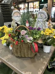 G W Sバック型クリスマス寄せ植え⛄️ バックに入った寄せ植えを作ってきました😄こんな沢山入るのかと思うぐらいお花🌸たくさんでビオラもフリルが付いたオシャレな物でチェッカーベリーも可愛い🩷くて豪華な寄せ植えが出来ました😄🎶