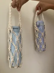 ペットボトルホルダー🧵 ずっと作りたかった、ペットボトルホルダーのWSに参加してきました💕水筒を手で持ち歩くことが多く、よく落とし、底がボコボコで不安定になってしまったこともありました😅これで解消されるかな⁉️かわいいボトルホルダーができて嬉しいです😊