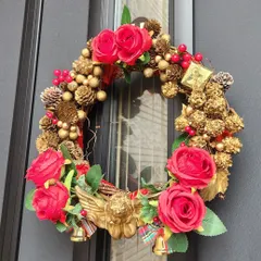 クリスマスリース ■作品内容仲人さんから結婚した年に戴いた手作りリース💞下のお花がだいぶ劣化してしまったのでアレンジ🌹小さくて色もシックな薔薇を探していたのに全然なくて😭納得いかない出来だけど今年はこれで… ■工夫ポイント戴いたものなので原型を留めたままアレンジしました