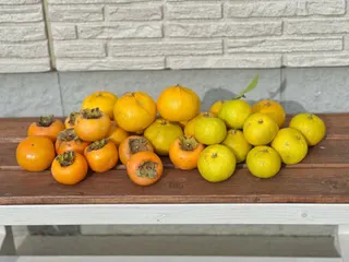 今日の収穫🍂 柿、みかん🍊、柚子を収穫しました朝日が眩しかったです…😌💤柚子の木、高くなっちゃって上の方は収穫できません💦