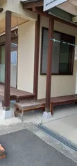 回り縁 ■作品内容左の縁側は業者の方が作った作り付けのものです 右側は回り縁にしたくて二つの台を作り組み合わせ置いたものです■こだわりポイント物干しを吊るしているので外に出ることなく縁側沿いで干せる手作りの方は移動できるので短い方を引出してテーブルにして休憩