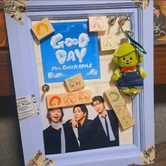 推しを飾るマグネットボード ■作品内容推しを飾るマグネットボード ■こだわりポイント新曲に合わせて、空色で塗りました🍏マグネットも手作りです。