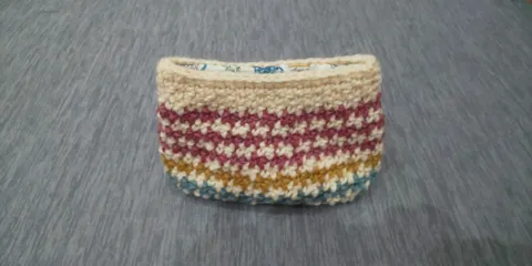 千鳥模様のポーチ 肌寒いと編み物したくなります🧶 千鳥模様が編みたくなり、YouTubeで編み方を見て編んでみました毛糸は半端な糸をかき集めて、マチつき、裏地つき、古いバネ口をみつけ偶然サイズピッタリ!!😆パカンと口が開きます