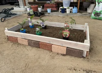 レンガと木製花壇で家庭菜園つくり 近頃はだいぶ気温が暖かくなってきたのでお庭に家庭菜園用の花壇を作ることにしてみました。花壇と言っても手持ちの木材で作っていきます(^^)/ま、花壇なのでそんなに精度も必要としませんので気楽に作りましょう(*'▽')設置場所の確認大体の大きさをラフに地面に書いていきます。木材の選定(頂き物の木材です)