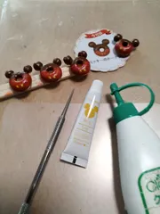 ミッキードーナツ🍩完成✌️ 黄色のドット🟡入れて完成…全部で5個出来ましたひとつはネックレスにして孫にプレゼント・私用はチェーン付けてチャームに後はミニチュアフードとして飾ります❣️仕上げスポンジで朱色ポンポンつや消しに接着剤混ぜた絵の具2度塗り接着剤に茶色🟤混ぜた絵の具2度塗りしてよく乾かしスポンジでつや消しネックレスとブレ