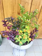 ハロウィンの寄せ植え🎃 久々のWSとっても楽しかったですご一緒してくださいました皆さまありがとうございました~🎃 ダリア千日小坊パープルフラッシュもみじ葉ゼラニュームジュズサンゴアルテルナンテラ