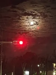 信号と同じ大きさでした。 先日のスーパームーンこちらでは、雲が多く見ることができませんでした。次の日信号機の🚥近くで同じ大きさで輝いていたので、撮ってみました。