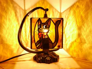 ジジのステンドグラス🐈⬛ ■ステンドグラス ランプ ■作品のこだわりポイントジジをモチーフに作ったランプです