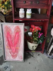 B&BサインボードロングBアレンジ ミルクペイントのトップコートを塗ってさらにクランベリーレッドとフロリダピンクをたしました✨