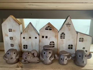 こちらも以前、陶芸教室でつくったはにわちゃん達です!無事に帰ってきてくれました❗️ちょっと色黒なはにわになりました😆白のがよかったかな…多肉と一緒に置こうかな〜