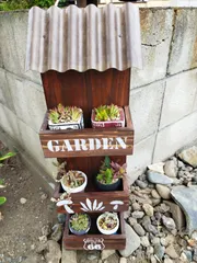 こちらもワークショップで作った作品にサボテン🌵 この庭をワークショップで作った作品いっぱいにしたいなぁ✨