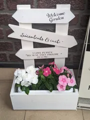 ガーデンサインプランター 1年ぶりくらいのWSでした😊色々とやり方を忘れてしまってたけど、みなさんとても優しくて楽しかったです✨このSquareを教えてくださりありがとうございます✨ ステンシルが気に入らなくてお家に帰ってやり直しました(笑) とりあえずお花を入れてみました♡今度多肉の寄せ植えをしようと思