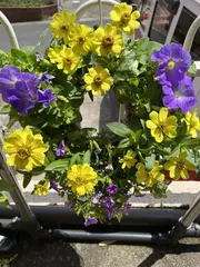 寄せ植え 先日、近隣のフラワーマーケットにてやりたかったリースの寄せ植えをしてきました。お花に詳しくないからお店の人に聞きながら色で選んだ感じ。又、いくら以上のお花を買うと先着50名さまに鉢をくれるって言うイベントを知って初めて並んでみました。思ったより可愛い鉢。大好きなゼラニュームをいれました。これって多年
