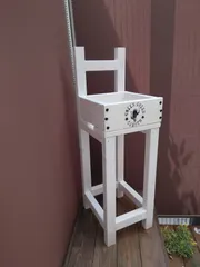 チェア型ミディアムガーデンスタンド ワークショップで作ったチェア型ミディアムガーデンスタンド婿が室内でバジルを育てていて 窓際ににちょうどいいのでは?と聞いたら是非欲しいです😆といってくれたので、あげることにしました。婿が喜びそうなアレンジをしました。イス鋲とステンシルでかっこよくしてパパにプレゼントしようね❗って孫と一緒にアレンジし