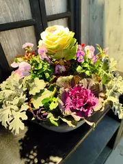 葉牡丹とパンジーとジュリアンの寄せ植え