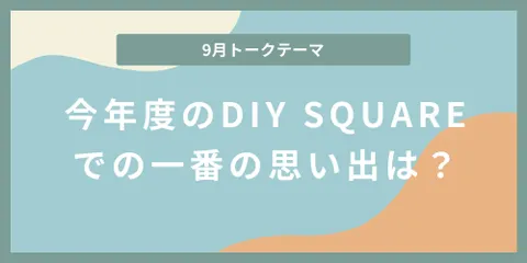 ## 9月トークテーマ「今年度のDIY Squareでの一番の思い出は?」 こんにちは、運営担当です😊 今日から9月になり、秋の気配に満ちた、涼しさが心地よい季節になりましたね🍂 DIY Squareの新年度も10月からスタートします! そこで今月のトークテーマは ## 「今年度のDIY Squ