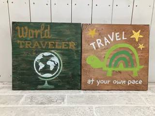 この1年 旅行に行けなかった残念な気持ちと来年は 行けます様にとの希望を込めて 作ったミニサインボードです😊