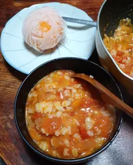 夏の総決算と秋の実り トマトを片付けて、残った実で作った大量のトマトソースでリゾット作りました。バジル、パセリ、オレガノ、たいむをたっぷり入れて、味付けは塩だけ!滋味〜〜!!煮詰めてたので味が濃い〜!更に秋の味覚の王、柿!今年はどれも甘ぁ〜い!そして熟れ熟れです。皮を剥いて芯を取り、冷凍しました。甘~い!素敵なデザートで