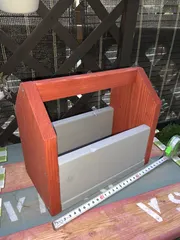 WS体験 おかもち こちらは、近隣のホムセンのWS体験で午後から おかもち を作ってきました午前は、先に投稿した多肉寄せ植えで午前、午後のダブルWSでした このおかもち 参加費用は、¥300なんです格安でした🙌色も2色選べます 店内のカラーから好きなのを選ぶ事が出来ましたので普段使わない色合いのバーガンディと