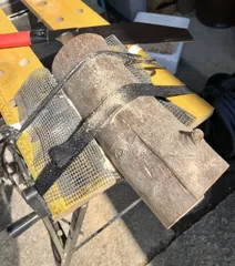 友人から薪用に、ともらったオリーブの枯れ木。バターナイフは三本作ったけど、カッティングボードも欲しいッ。でもねー。オリーブウッド、硬いし。丸太だからクランプ使えないし。縛るには短いし。私のレベルでは敗北確定しかない難敵だとは分かっていたよ。だがしかーし、立ち向かう時が来た!外で作業出来る気温になった
