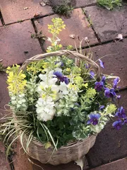 葉牡丹、最後の花火上がりました❣️ 葉牡丹の寄せ植え、フィナーレを迎えました!レモン色のきれいな花が咲いてます🌼この花が終わったら寄せ植えは解体します。花火のような華やかさ💕ビフォーはシックでしたよ。 こちらはリースの花火!リースは作った時とは全く違う色合いになってますね。 ビフォーはこちら。