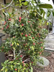 小林幸子さんの歌にある雪椿、です。我が家のお庭に咲いてます。 このこも成長は遅くもう10年以上にはなりますが、この可愛さです。 花も小さいですが、いっぱいさきますね。 とても可憐です。 亜月のガーデン物語り🪴