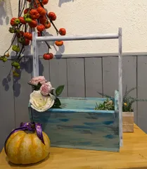 2024年度初のWSにてラウンドバスケットを作ってきました✨海をイメージして店舗で選んだカラーに持ち込みのピーコックブルーを足して、アンティーク調にペイントしました🌊後ほど海をイメージしたステンシルを施す予定です😆ご一緒した方と記念撮影📷️ダークブラウンと赤がステキです✨今日も楽しく参加させていただ