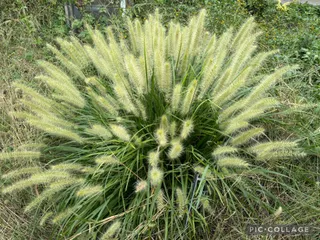 幅1メートルほど、大きなチカラシバです。猛暑でもへっちゃら。周りがメヒシバやエロコログサに覆われてもグイグイと育ってくれました。大型グラスは強いですね!