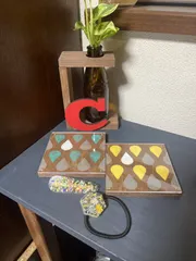 最近の作品 コースターとレジンの作品たち。 久々のステンシル、やっぱポンポンがむずかった💦 レジンは初挑戦でした。こんな風に作るのねーと勉強になりました✏️ どちらも使うのもったいなくて、しばらく飾ります😊