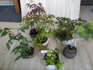 形見 ヒメサルスベリ セキショウけやき丹頂草 タツナミソウ五葉松はぜヒメウツギ山紅葉アジアンタム? 盆栽教室に楽しそうに通い始めて間もなく亡くなった兄の形見。義姉が大切に。マンションの大規模修繕で、我が家にお引越し😽枯らしたら大変🙀
