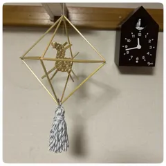 ヒンメリ ワークショップで教えていただいたヒンメリタッセルだけ自宅にて作成して装着 この先生のすごいところは 材料である麦から ご自身で栽培されているところ✨