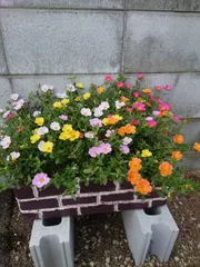 ポーチュラカ花盛り 以前作った 発泡スチロールのレンガ風プランターhttps://diy-square.cainz.com/announcements/tj5rijlkexg9fsu2ポーチュラカの苗を5色 植えました。スキマにポーチュラカのカットした先も挿し挿ししました😆😆お花が色とりどりカラフルに混ざって咲きとても