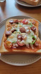 CAINZさんのイベント参加して、初めて野菜を作りました😊収穫したトマトとピーマンでピザトーストに😋自分で作ったお野菜!しかも採れたて新鮮なトマトとピーマンは最高でした✨来年も挑戦しようかな☺️