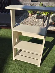 足場風三段ラック 先日のWSで足場風三段ラック作ってきました。ノコギリで汗だくになりながら頑張りました。ガタついてしまいキャプテンに修正してもらったり多少ガタツキ残ってしまいましたが ビス を底部分にアジャスターみたいにつけるといいと教えてもらいました。 たまたま上から見たらヨレてるのがよくわかりました。→