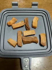 またまたやってしまいました。ホットサンドメーカーを使って カインズさんで買い物をした時レジ横にあった「焼き干し芋」です。 ■材料 カインズさんで売っている焼き干し芋■作り方 ホットサンドメーカーをストーブで少しだけ温めます。次に焼き干し芋を乗せてホットサンドメーカーに蓋をして挟んで焼きます。時間は3分から5分くらいです。適宜ひっくり返しながら全体がムラ無