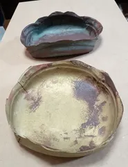 紙皿でアイアン風ペイント 1時間程ゆったり余裕のWSで楽しかったです。夫婦2人だけでお世話になりました。裏です。前からアイアン風ペイント興味があったので参加できて良かった!