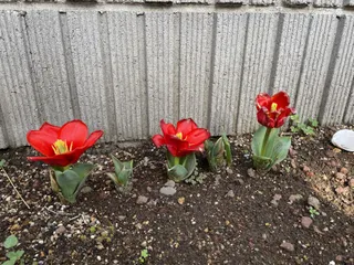 ずんぐりむっくり 庭にある草花。毎年何故かチューリップはずんぐりむっくり🌷でもこれはこれで可愛いかも💦