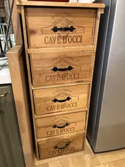🍷ワインの空き箱を利用した整理箪笥 ワインの空き箱をかなりお安い価格で、知り合いのカフェが売りに出していた時に、ゲットしました。それに、合うようにそ外側の箱物を作って、かっこいい、引き出し付き、整理箱になりました。