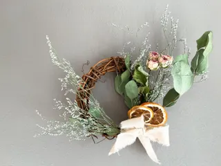 初めて WSに参加しました🎶ドライフラワーを使ったリースです🌹 オンラインなのに、ついつい夢中で無言になって...🤣でも色々と教えてもらえて楽しかったです。 気分良くそのまま、残りの材料で他のものも作っちゃいました💐楽しかったです。 また機会があれば、参加し