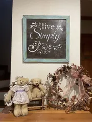 アンティークな色合いがステキ~💖 枠も角がぴったり合ってそれだけでも尊敬✨ テディベアもリースもステキ💖 色々作れてすごいです‼️