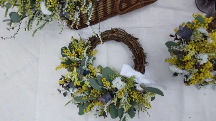 今日はカルチャーセンターでミモザのハーフリースを作りました💐 リースの形や作り方も色々あって、いつも悩みながら作ってます🤔💦 リースは細かい作業なので作るのに時間がかかってしまいますが、また作りたくなってしまいます😊💕